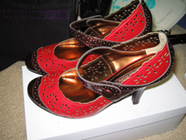 赤い靴は履いたことがなくて、うまく合わせられるか不安だったんですが、これはつま先とかベルト部分とかに茶色も入ってて、茶色は大好きでよく合わせる色だから、これだったらいけるかな~と思いました。